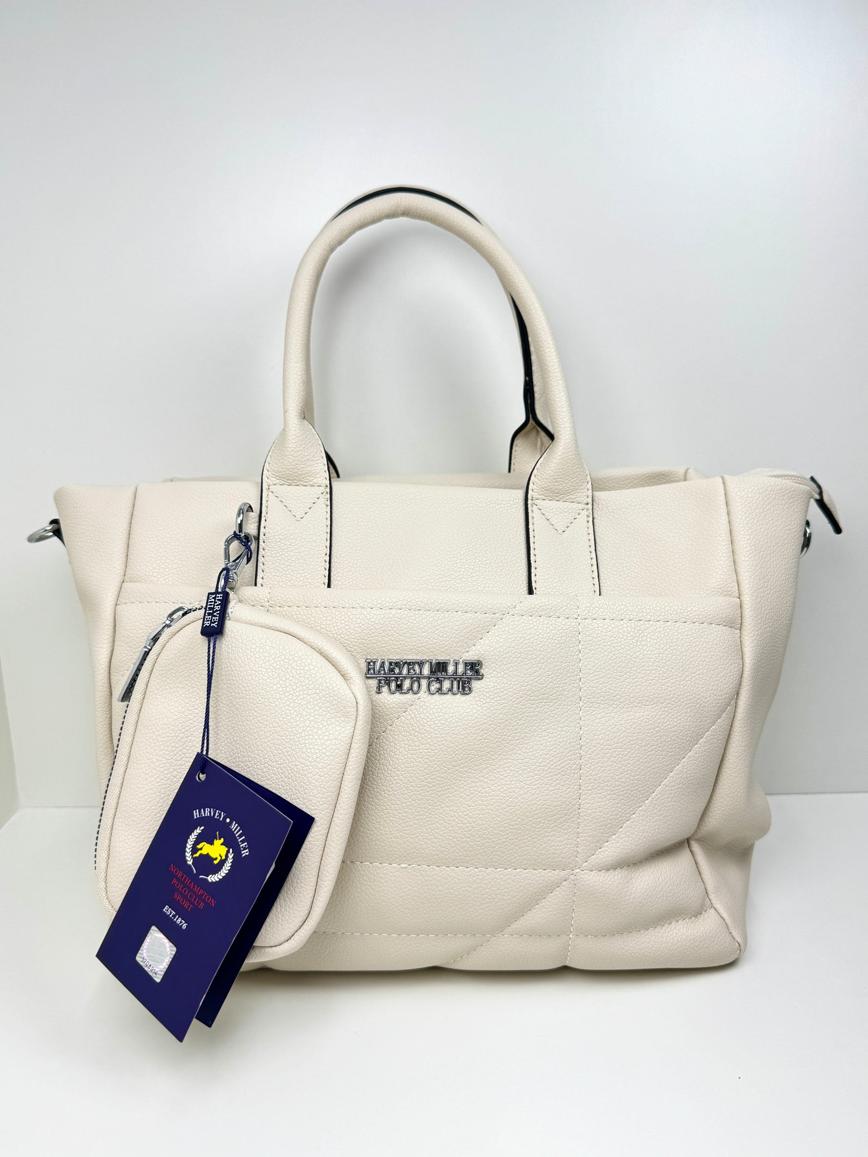 Coralie è un modello Boston Bag, con una forma rettangolare e una struttura morbida e capiente. Firmata Harvey Miller Polo Club, questa borsa è dotata di doppi manici corti per il trasporto a mano ma anche di una tracolla.