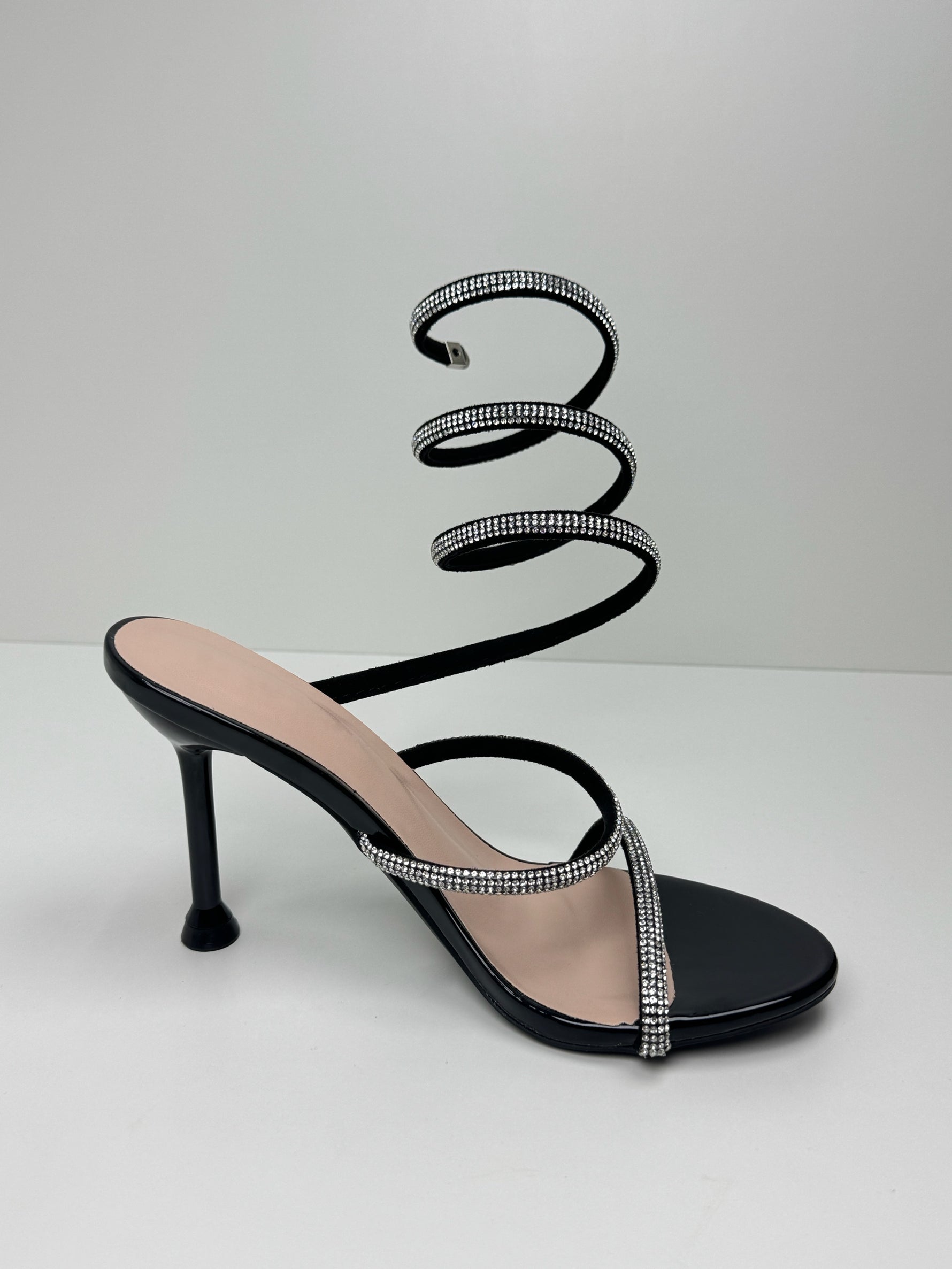 Il modello Denise è un sandalo gioiello a spirale, con un tacco a spillo sottile e una punta rotonda e aperta. Disponibili in : Nero, Argento, Oro e Oro Rosa.