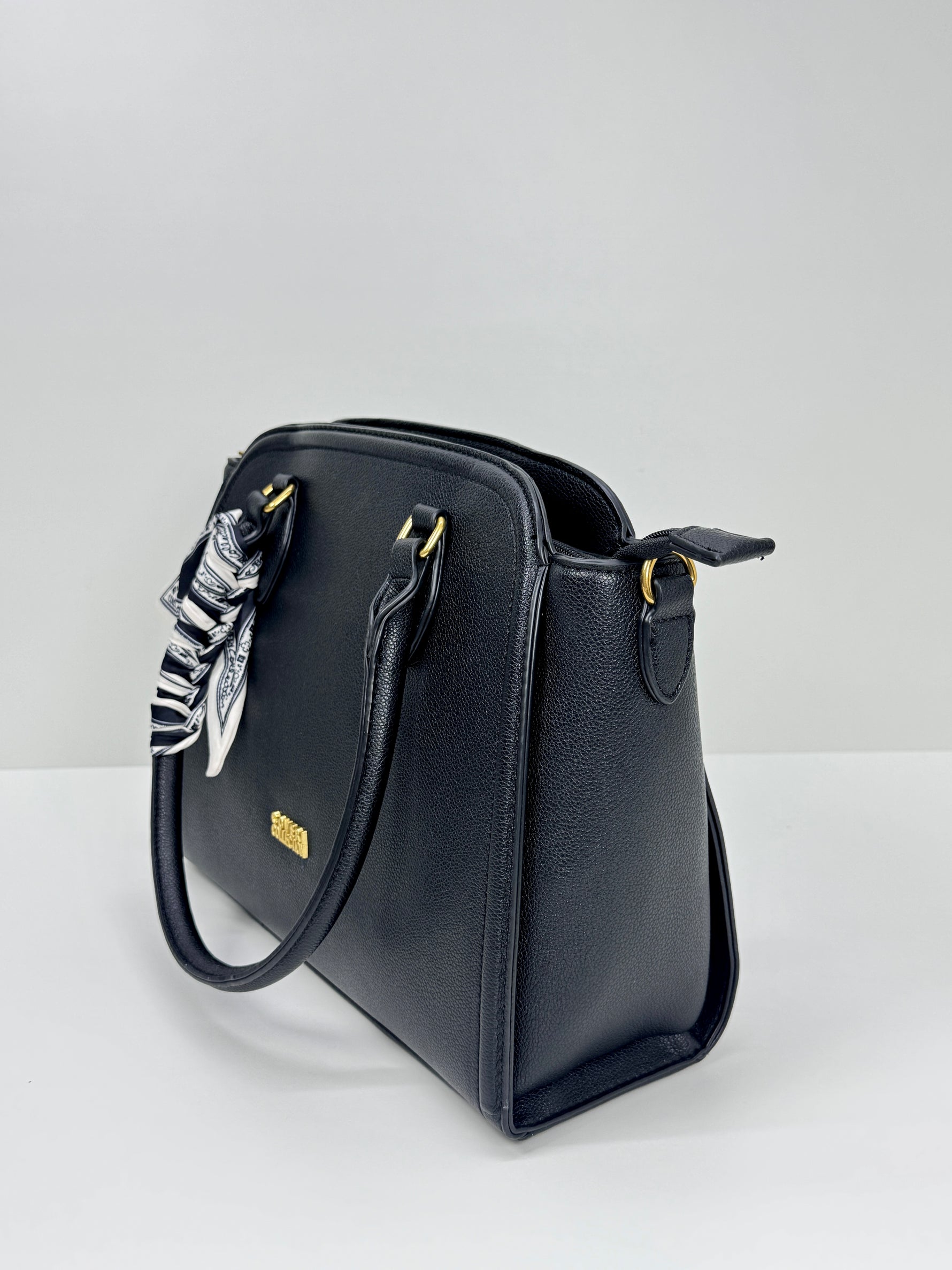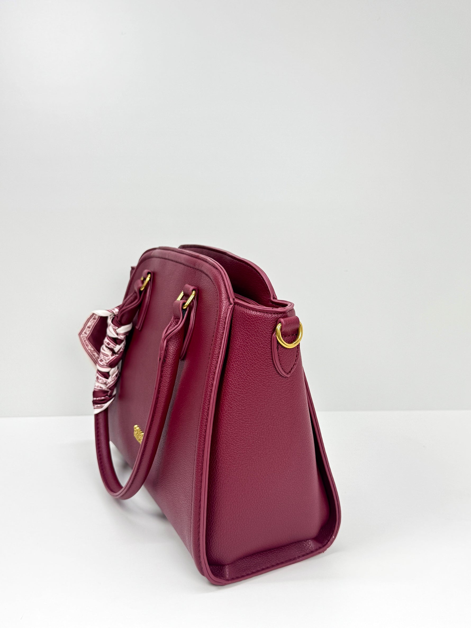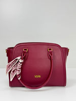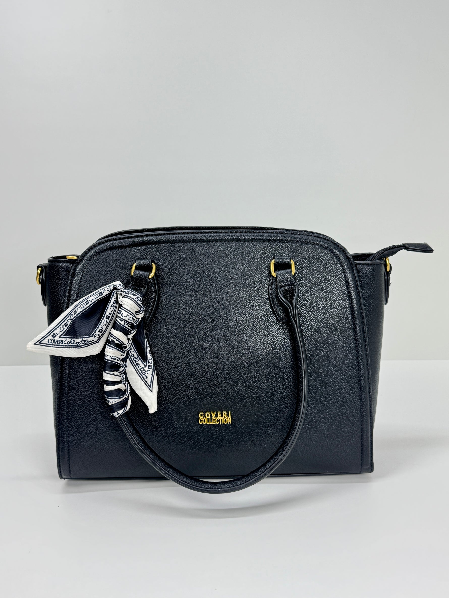 La borsa Mave presenta una chiusura a zip, e un foulard laterale sugli stessi colori. È un modello della Coveri Collection in ecopelle martellata.