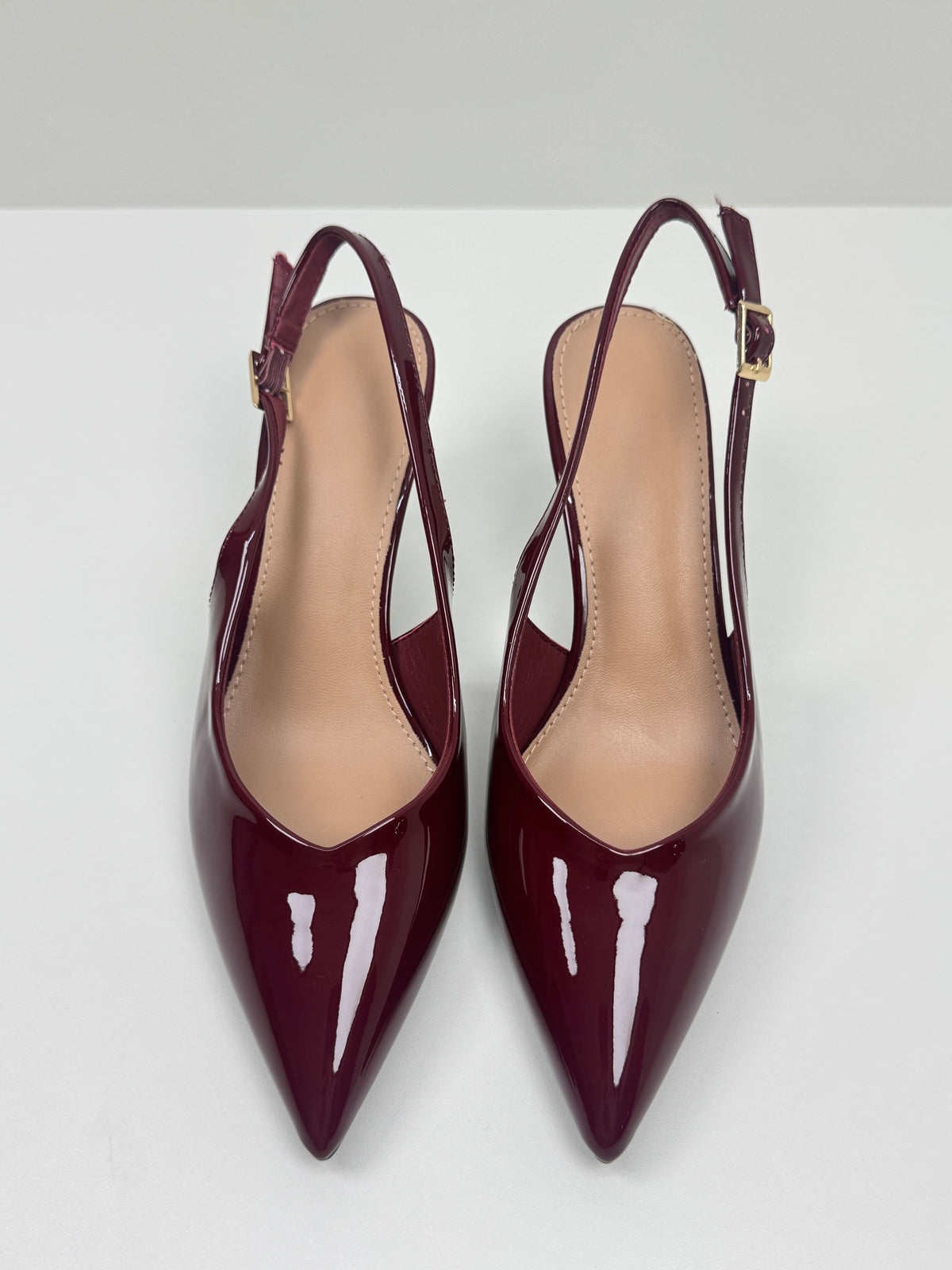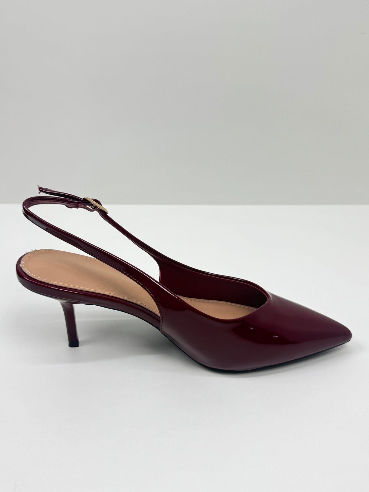 Il modello Brookes è in vernice classico, con tacco a spillo e cinturino regolabile. Questa slingback disponibile in Bordeaux, Beige Rosato e Nero, è una scarpa dalla linee femminili ed eleganti adatta a abiti importanti ma anche outfit più casual.