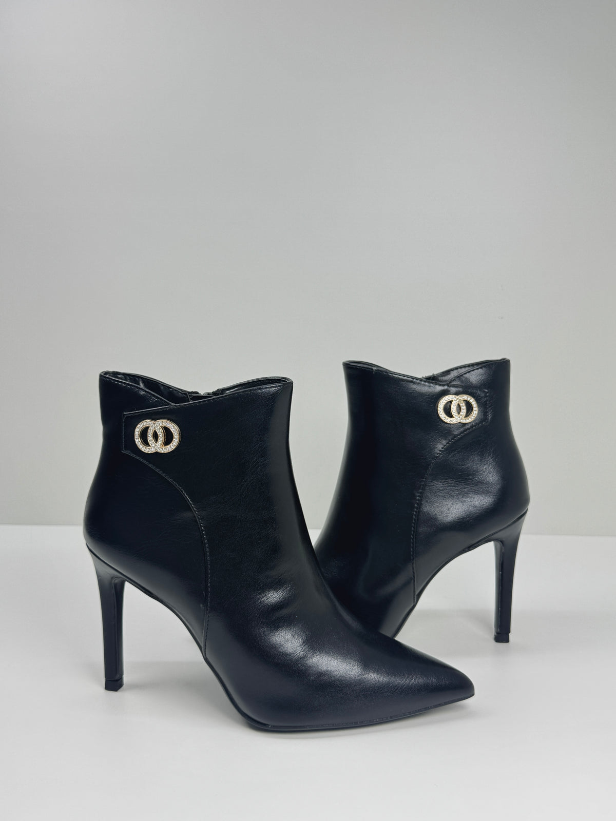 Gli stivaletti Emily con tacco a spillo uniscono eleganza e stile, arricchiti da una raffinata decorazione glitter che cattura la luce ad ogni passo. La zip completa laterale facilita la calzata, garantendo comodità senza rinunciare al design accattivante.