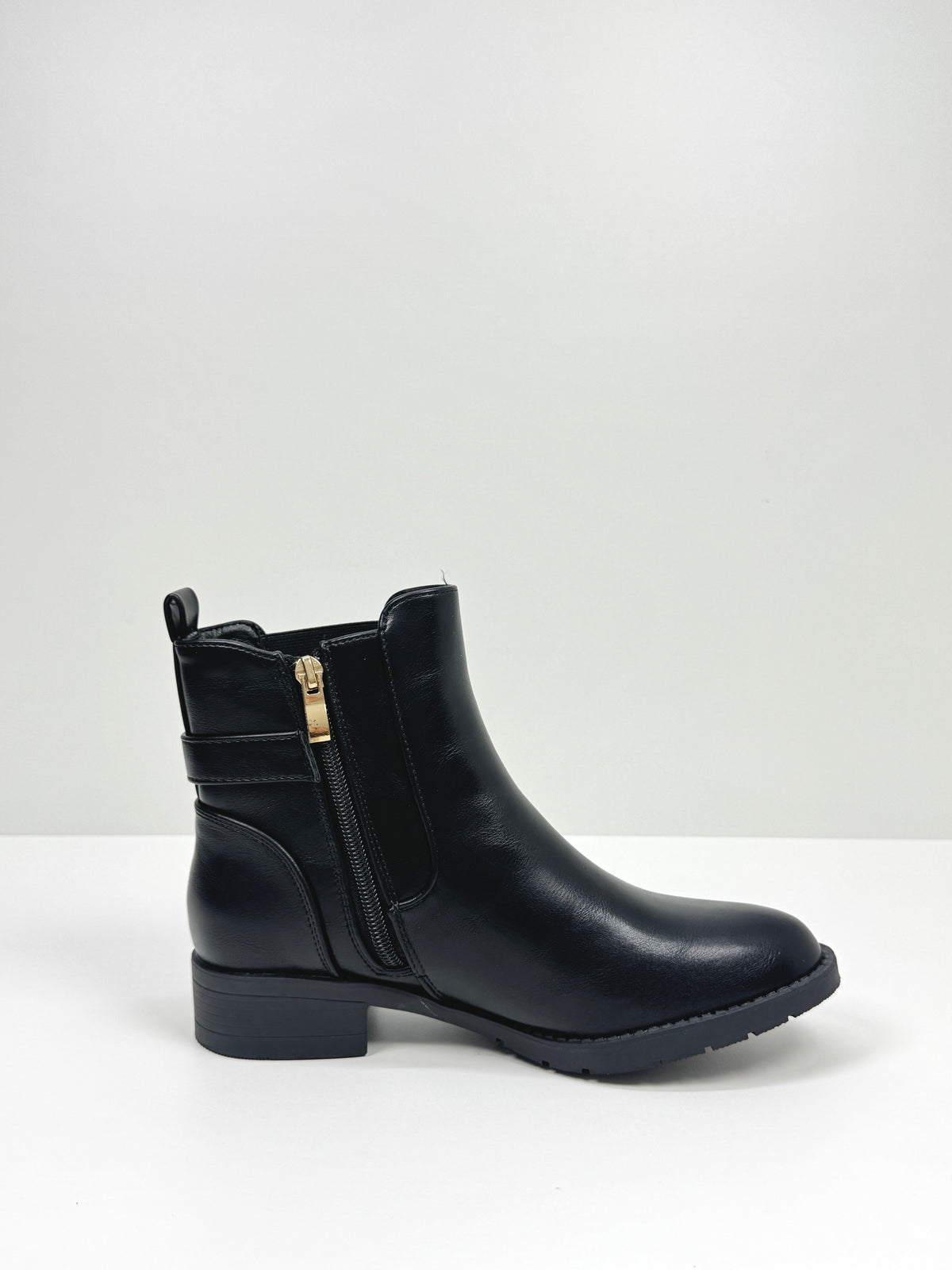 Gli stivaletti Mabel uniscono comfort e stile quotidiano con un tacco basso perfetto per camminare tutto il giorno. La zip laterale garantisce una calzata pratica e veloce, mentre i dettagli in oro donano un tocco sofisticato e contemporaneo al tuo look.